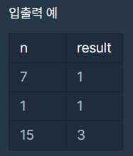 머쓱이네 피자가게는 피자를 일곱 조각으로 잘라 줍니다. 피자를 나눠먹을 사람의 수 n이 주어질 때, 모든 사람이 피자를 한 조각 이상 먹기 위해 필요한 피자의 수를 return 하는 solution 함수를 완성해보세요.