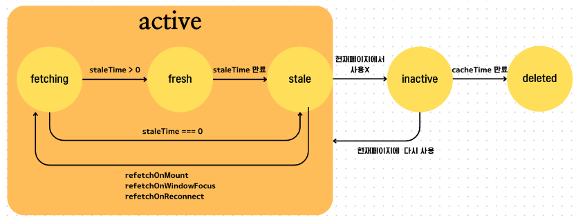 즉, 최근에 가져온(fetch) 데이터이며 staleTime이 아직 경과하지 않았고 fresh상태에서는 추가적인 데이터 요청이 발생해도 리액트 쿼리가 데이터를 재요청하지 않고 현재 캐시된 값을 사용한다