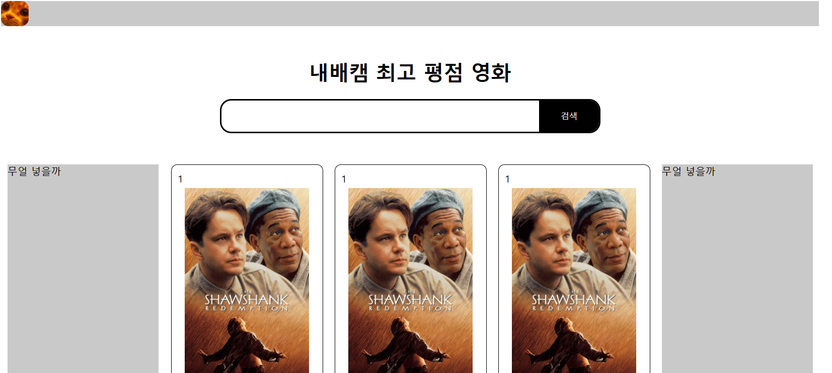 - 양 사이드 공간 확보해두기 ->div로 만들어놓기 => 영화 순위에 없는 추천작이 쌓이게 해보자!, 방명록처럼