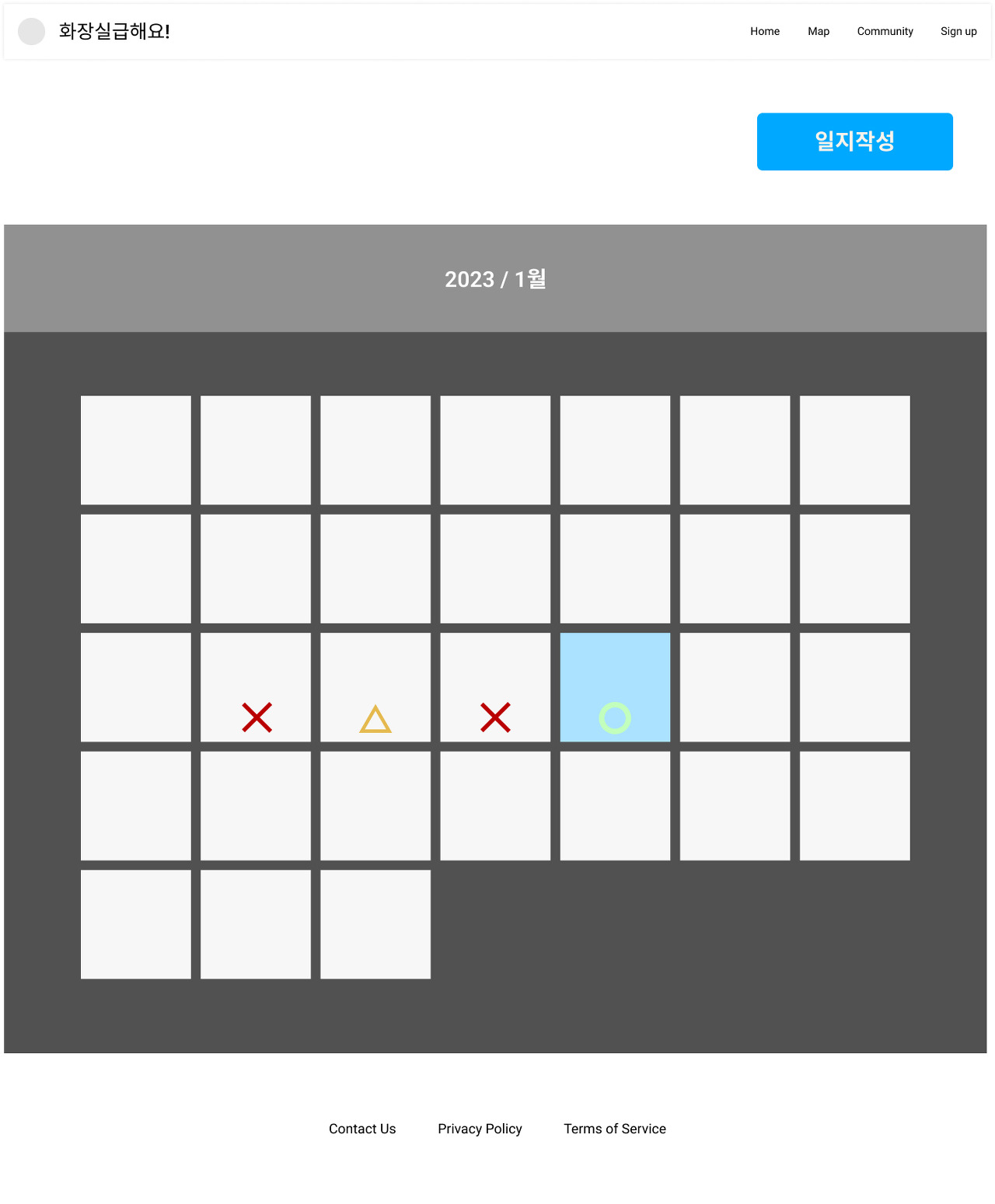 - 더불어 일기형식으로 나의 쾌변 일지를 작성하여 나의 상태를 확인할 수 있고, 정보 공유와 고민을 질의 응답하는 커뮤니티도 있으면 좋을 것 같아서 만들어보았다.