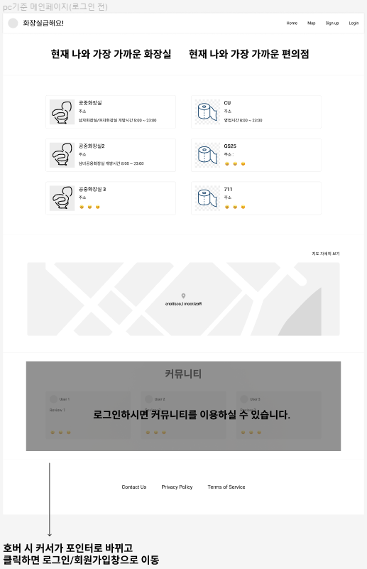 - 로그인 없이도 화장실보기 가능 (커뮤니티에서 로그인 필요)