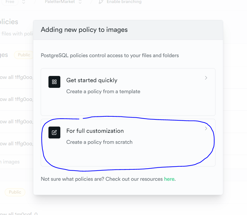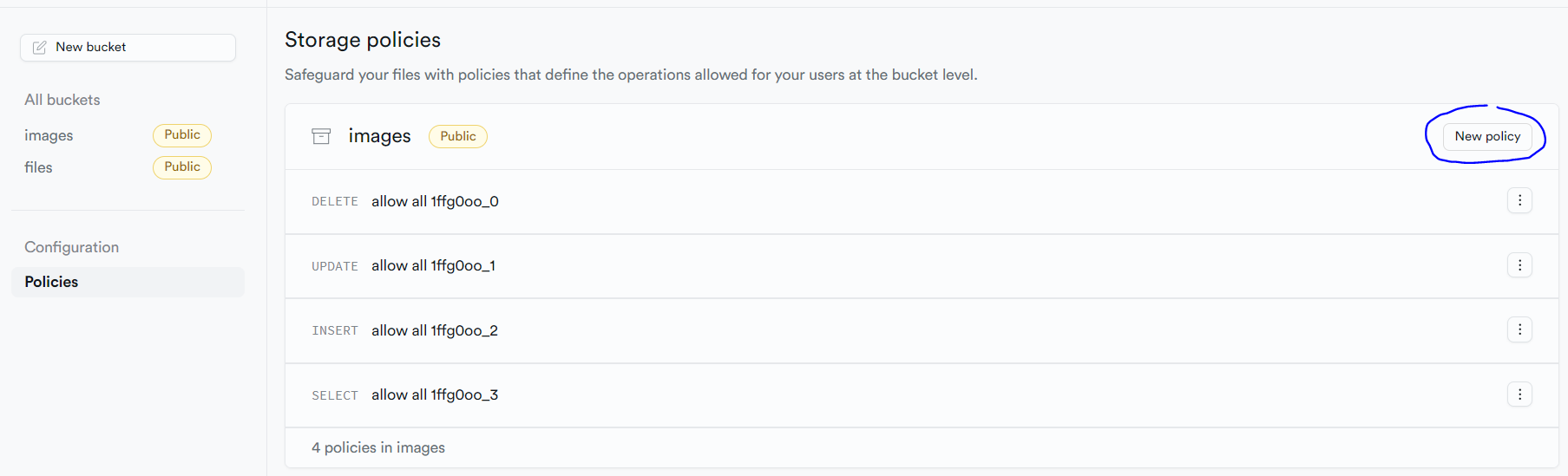 policy가 없는 경우 new policy를 눌러서 추가해주면 된다.