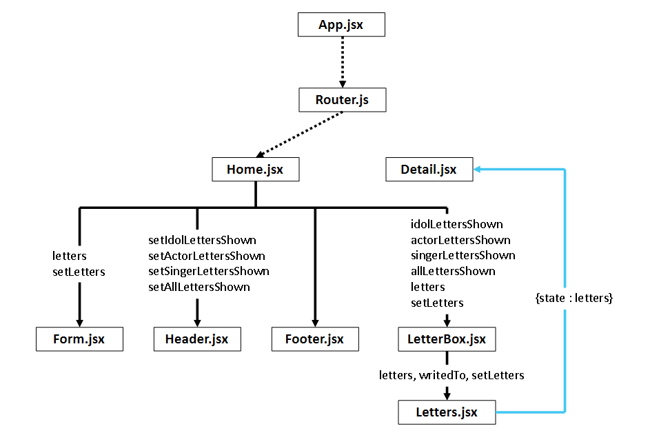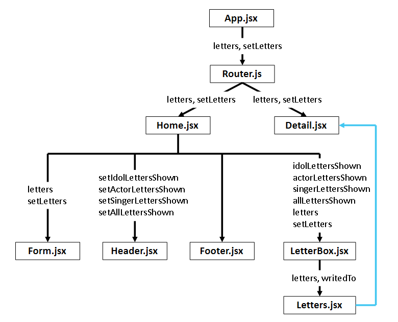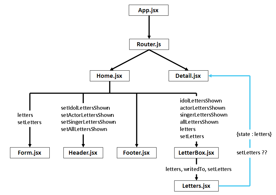 state를 새로 선언하고 그 state를 set해준 것이기 때문에 Letters에 있는 letters state에는 아무런 변화가 생기지 않는 것은 당연하다.