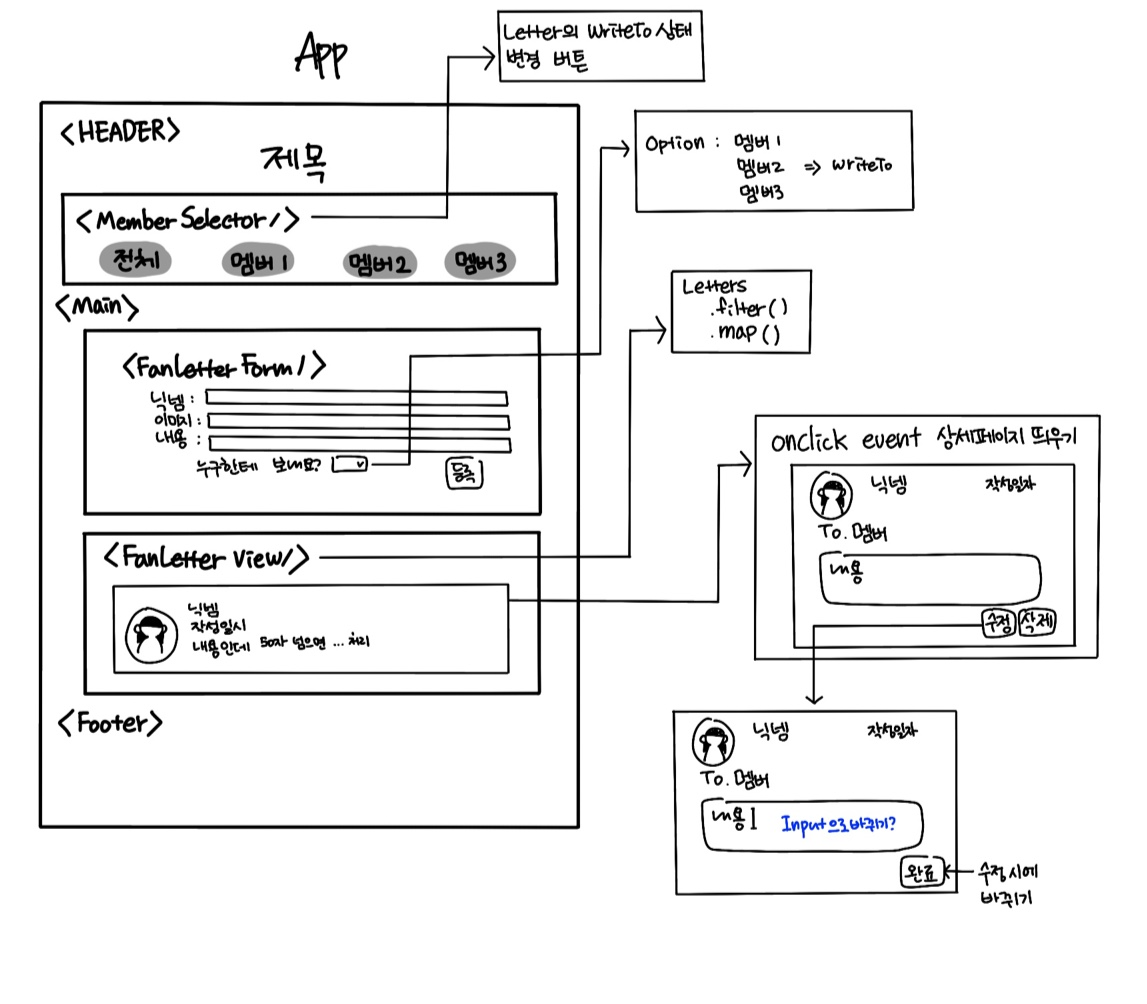 - 팬레터 전체에 클릭이벤트를 줘서 모달 띄우기, filter로 인자로 받은 것의 id 와 버튼의 id가 같은 것만 띄우기(지난번 개인과제에서 달성하지못한 것) => 리액트 책에 모달 만들기 있었으니 참고해보자.